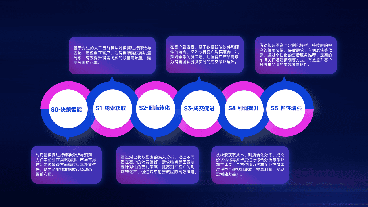 通过拓宽潜在客户来源、、优化线索分配并提高到店转化率,,,,以增强销售效率。。。。同时,,,利用线索数据不断优化分析模型,,有效提升转化率,,,扩大营销影响力。。